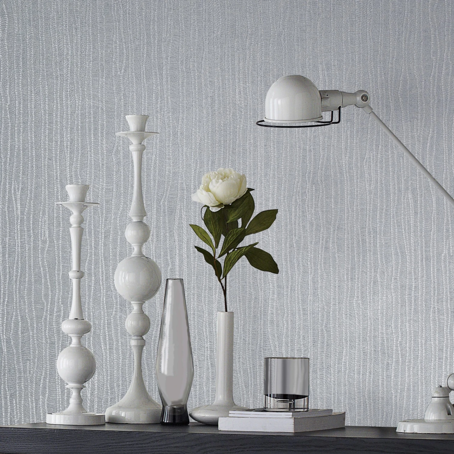 This wallpaper has a grey textured design and features a glitter finish which gives it a luxurious look.