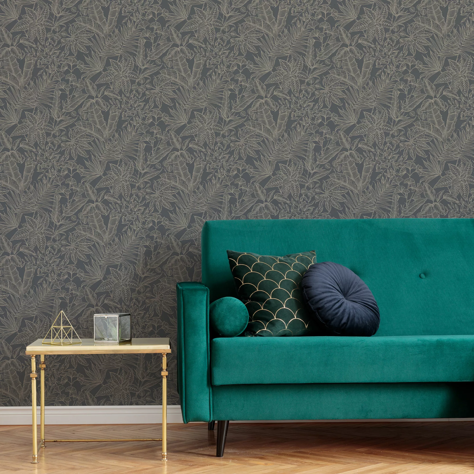 A beautiful design, made to whisk you away to a paradise island, featuring bold tropical leaves and soft elegant metallics, this wallpaper is the perfect addition to create a space of luxury and wonder.