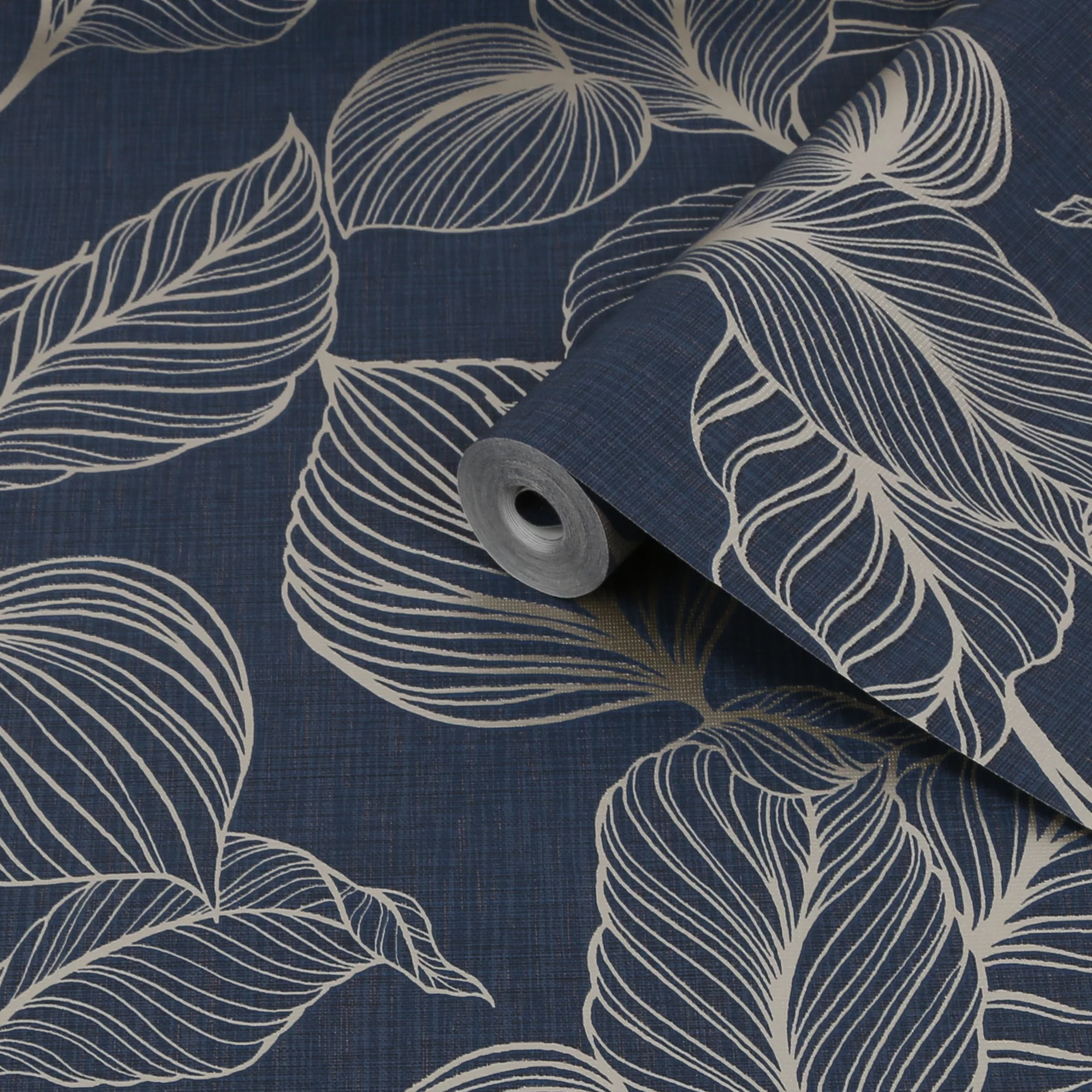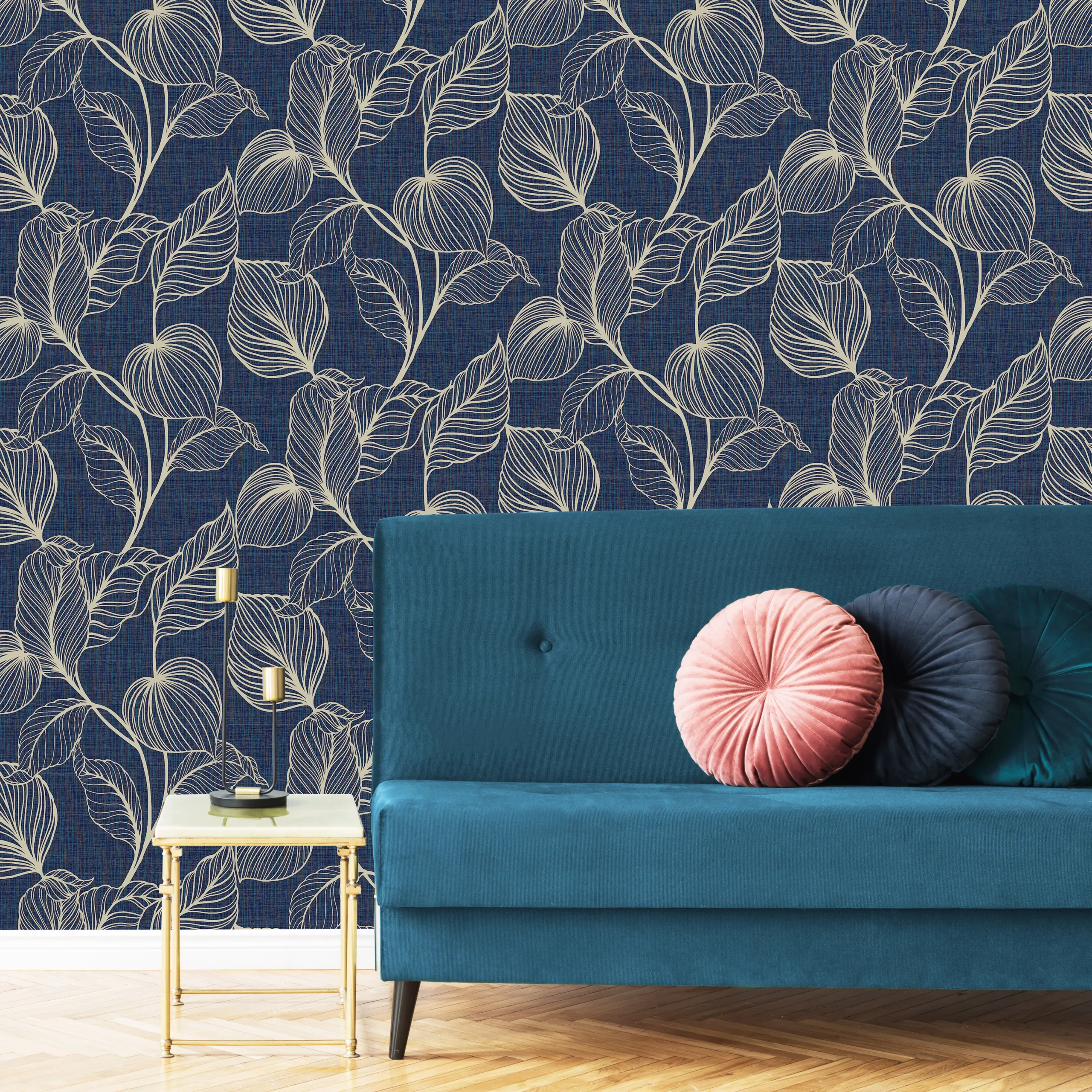 Named after the beautiful Hosta Leaf, Royal Palm offers a striking, contemporary alternative for luxury vinyl. Featuring a classic woven backdrop, subtly enhanced with metallic highlights. For a luxurious finish to your walls coordinate with the richly gilded grasscloth texture or Royal Silk coordinate.