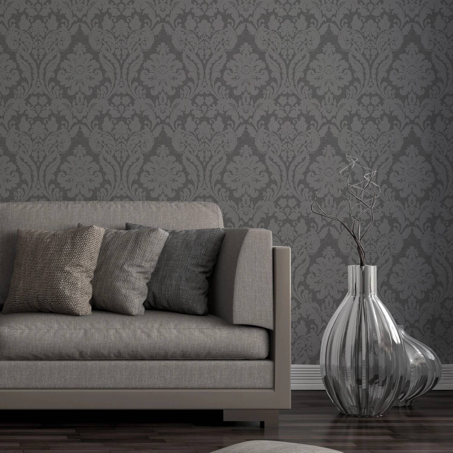 This charcoal colour wallpaper has a damask style design with a raised glitter effect to create a wallpaper that works equally as a statement piece and to adorn all four walls.