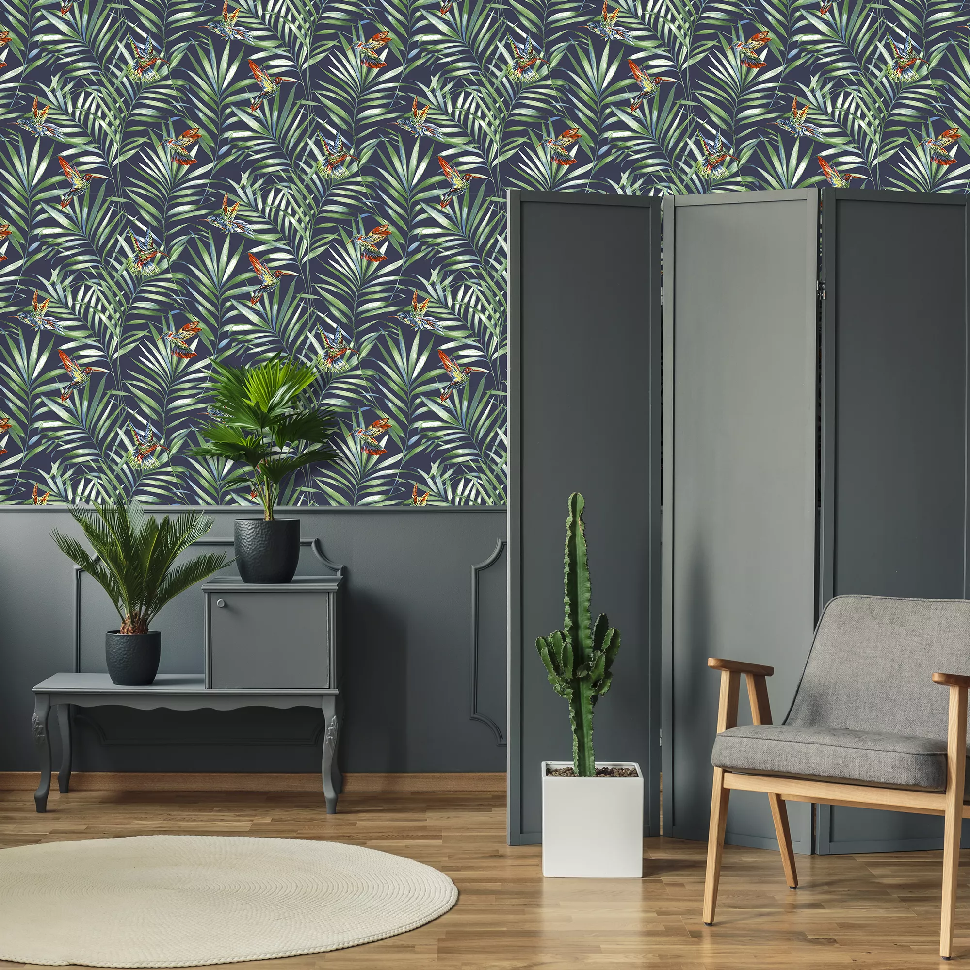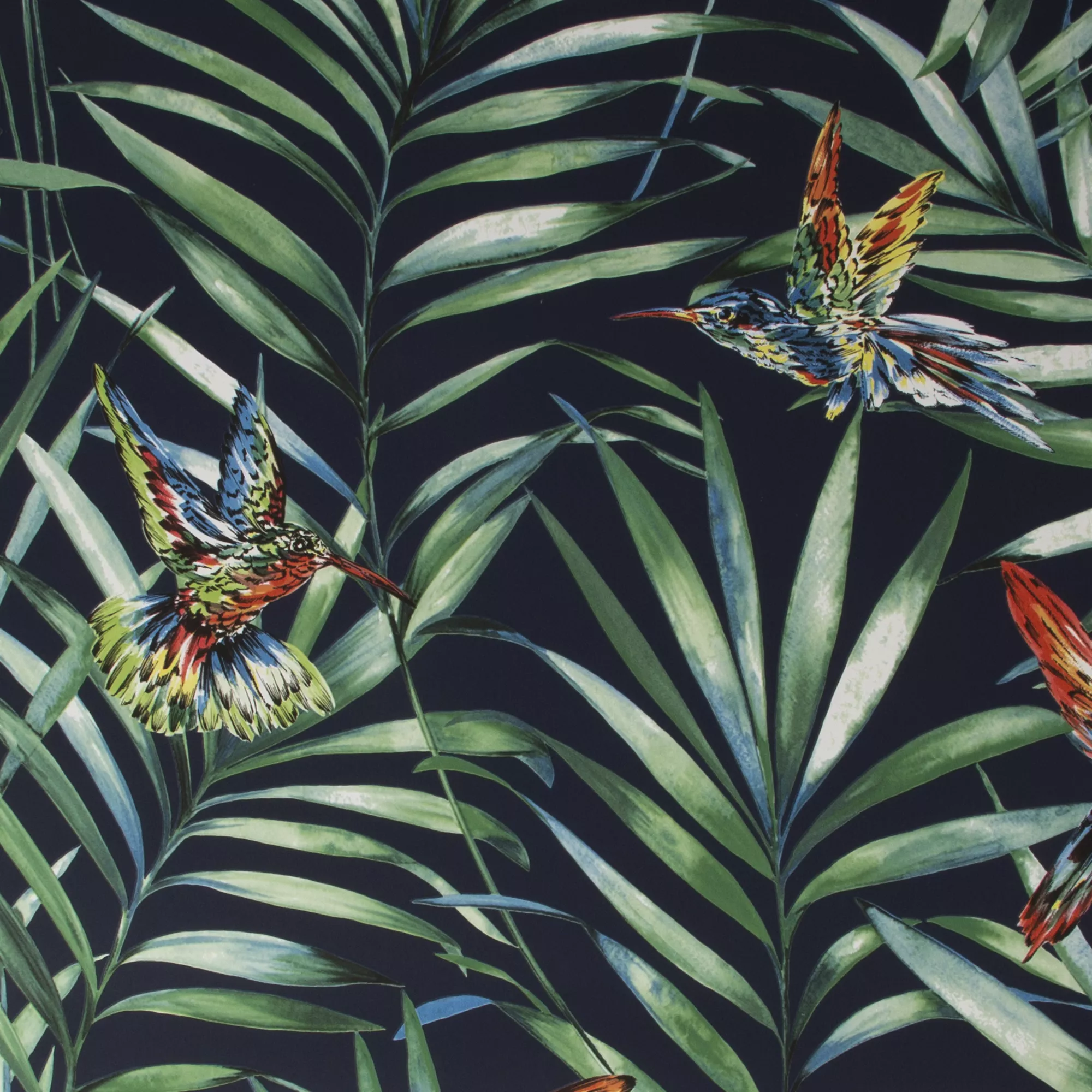 Bring your walls to life with the sights of the tropics with this tropical wallpaper. Featuring bold vibrant leaves and pops of colour with beautiful humming birds, this wallpaper is bursting with character, ideal for a whole room look or for a striking eye-catching feature wall.