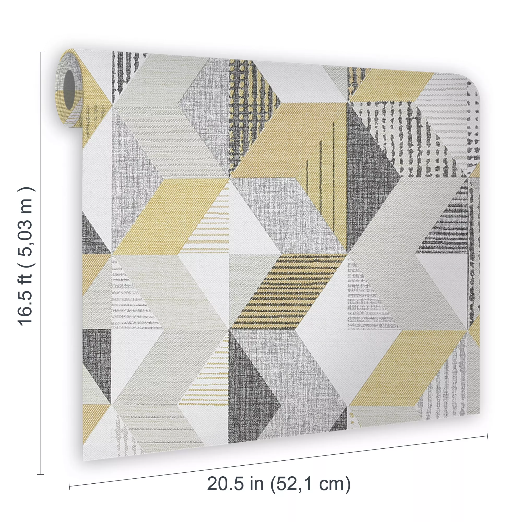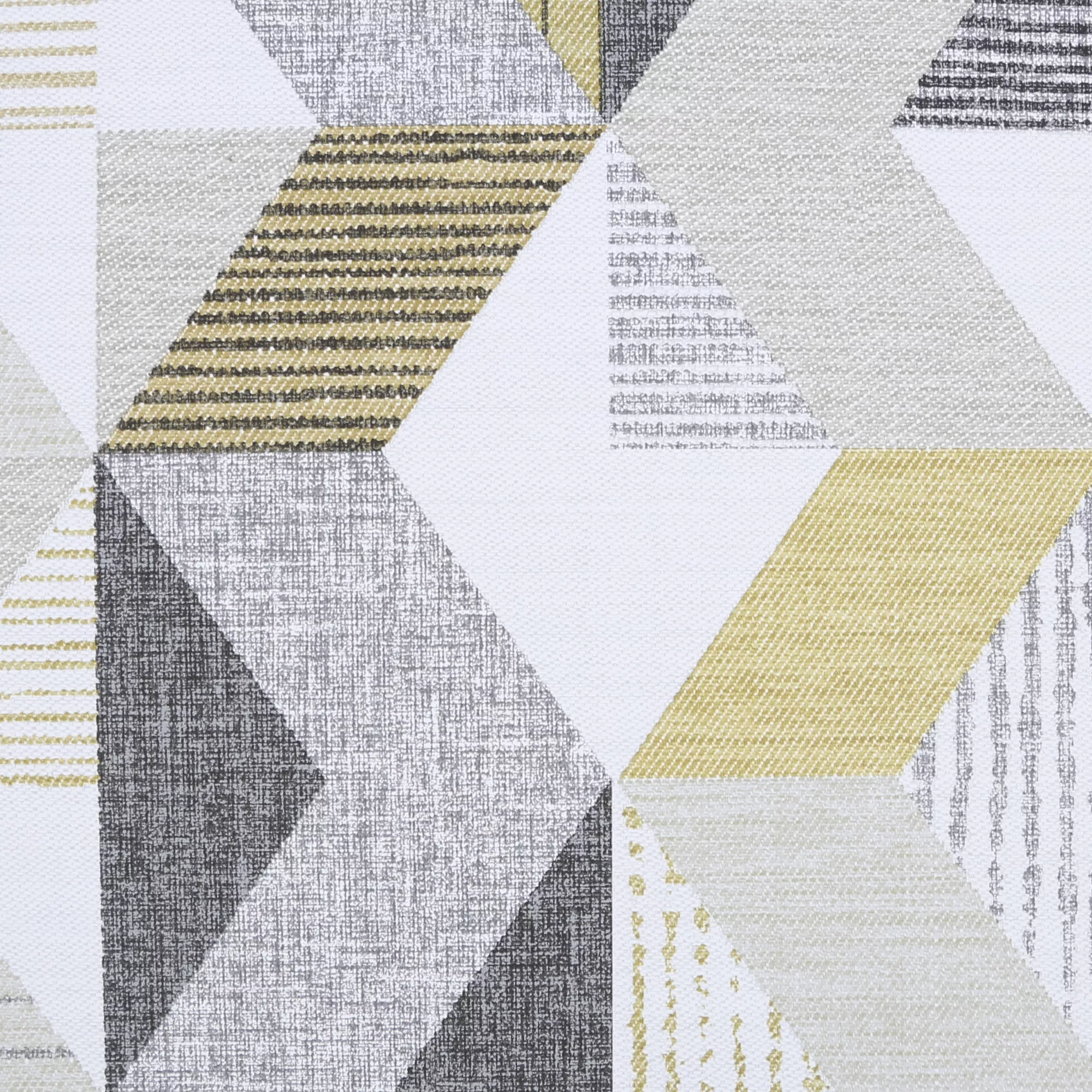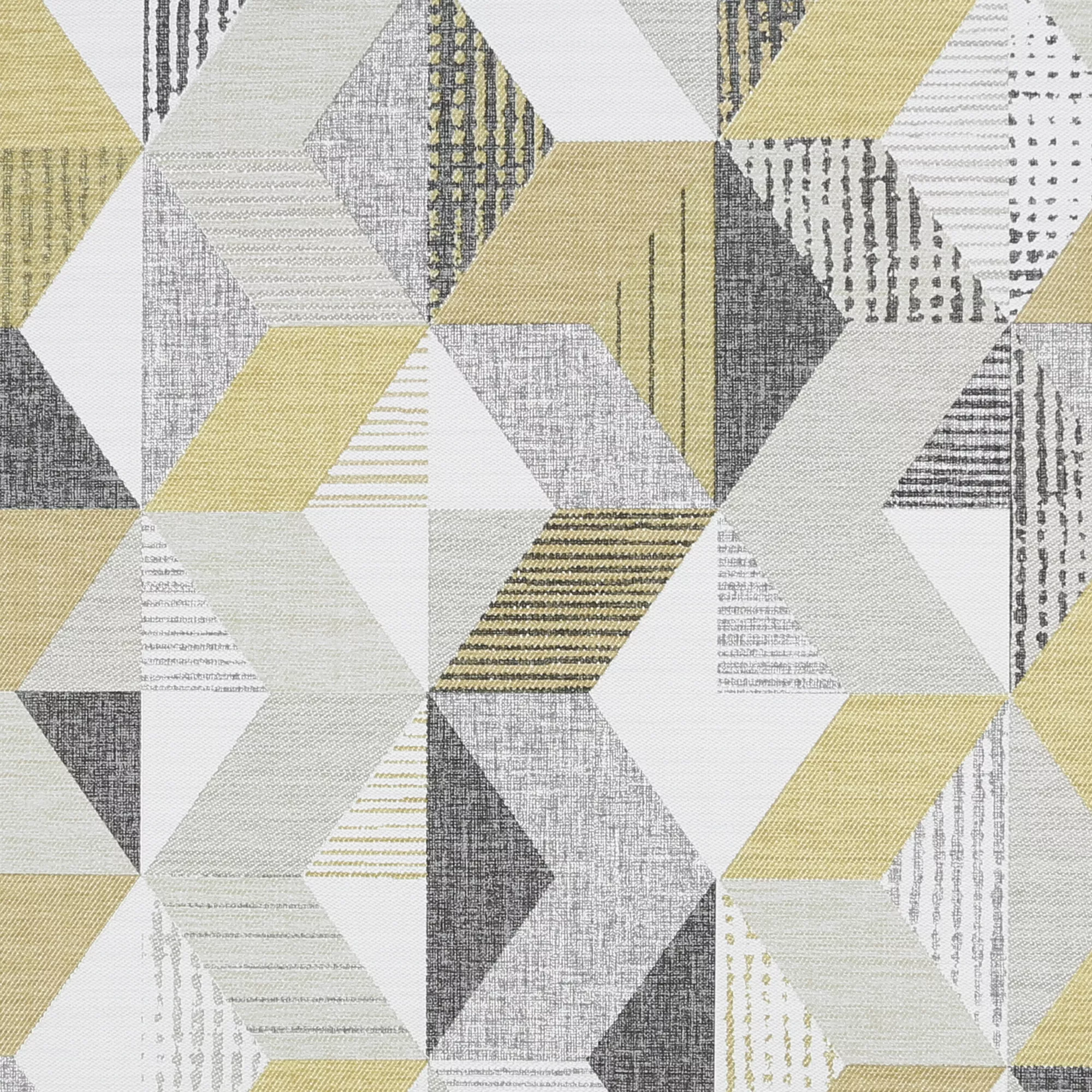This modern, geometric design mirrors the art of marquetry, where pieces of veneer are applied in layers to form decorative patterns, designs or pictures. The colour palette of ochre and grey adds a fresh and modern twist.