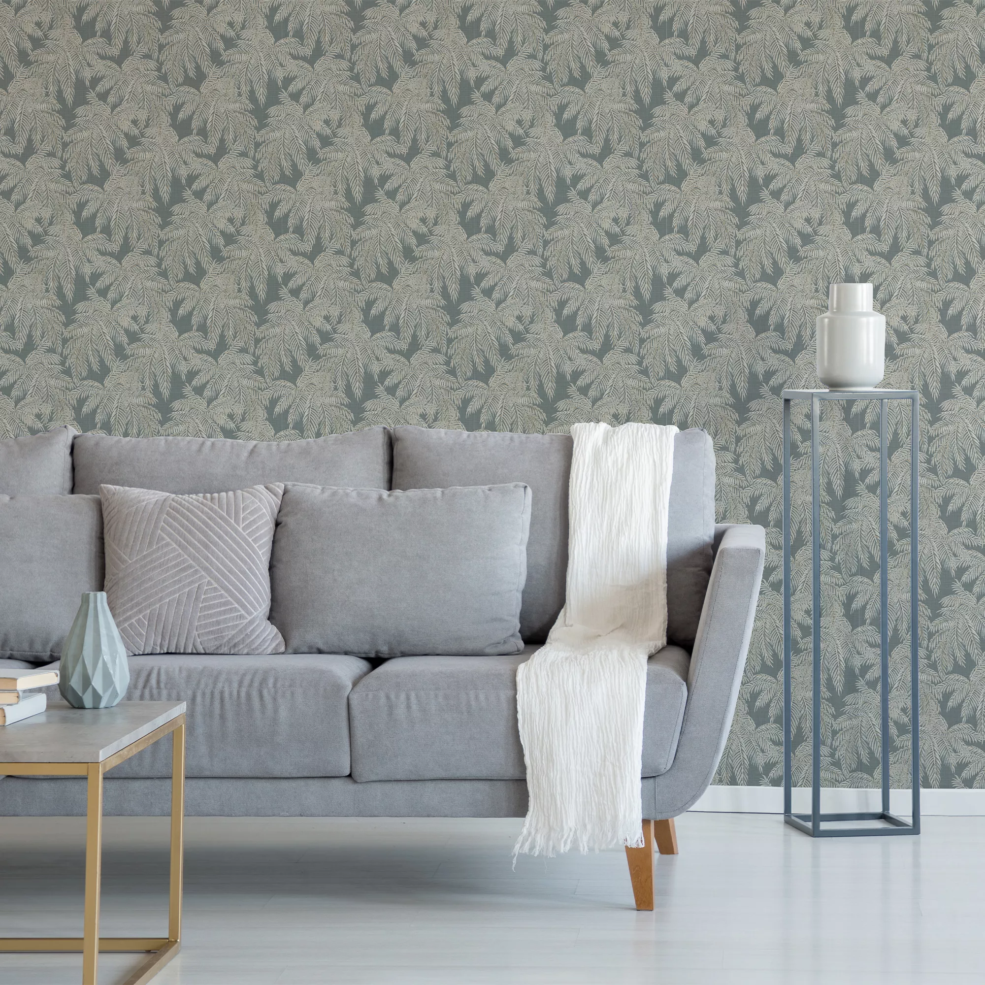 This Pyroo wallpaper brings tropical palms to your walls, it features a busy print of wonderful palm trees that creates a sophisticated tropical look.