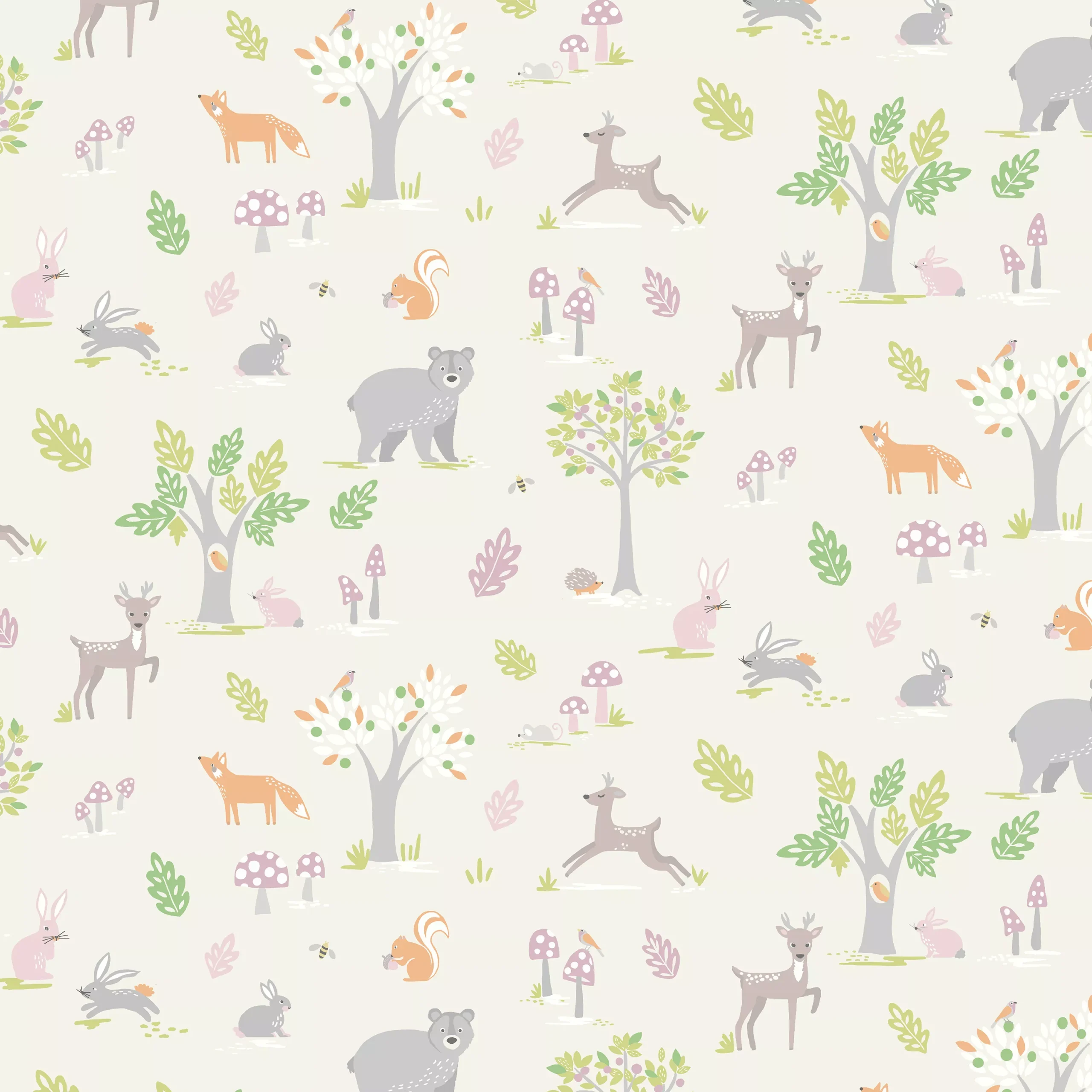Woodland is a series of friendly forest animals set on a cream background. Perfect for playrooms, nurseries or bedrooms.