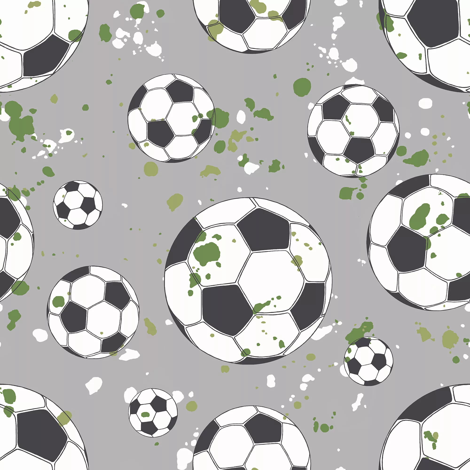Football wallpaper is a series of different scaled footballs sat on a grey background and is the perfect addition to a spot-mad child’s room. Ideal for bedrooms and playrooms