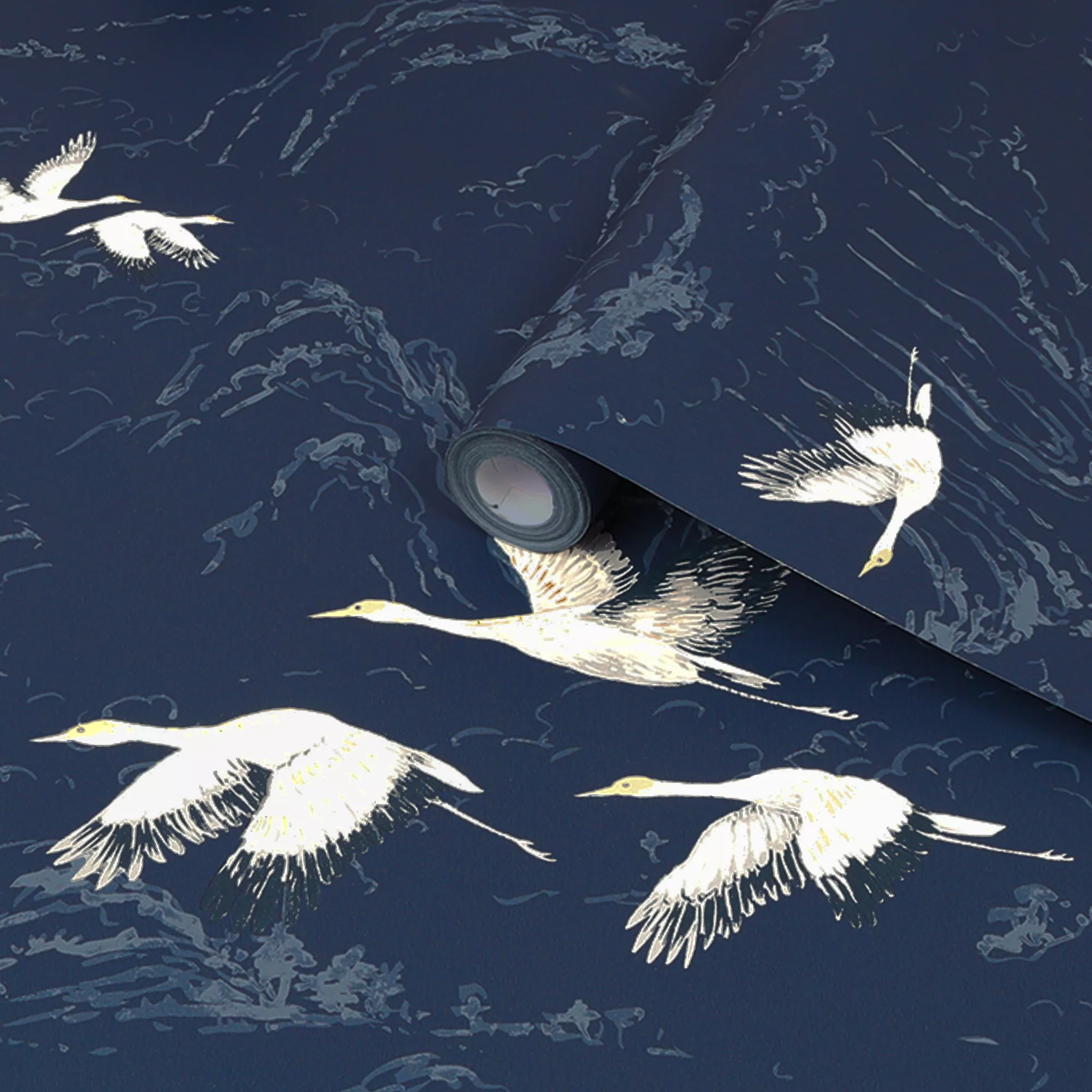 Animalia is a graceful design featuring cranes in flight to add a contemporary yet classic feel to your home.