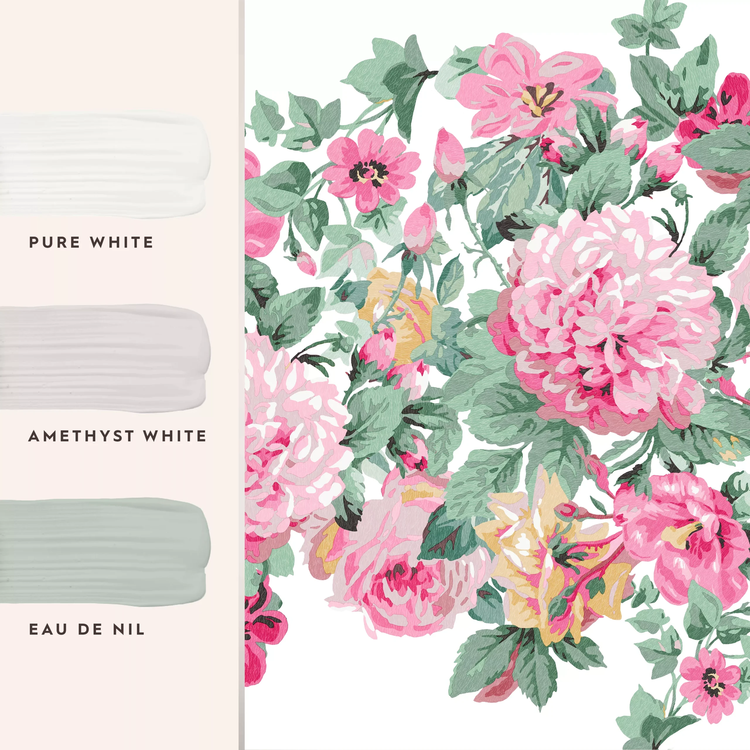 Combining oversized roses with convolvulus blooms, this beautifully naturalistic large scale floral design is both bold and beautiful. This traditional archive floral print allows you to bring a touch of an English country garden inside. Our murals measure 3m wide x 2.8m high and come on one roll with 6 referenced panels. All Laura Ashley wallpapers are printed in the UK and are paste the wall application, simply paste the wall, hang your paper, and leave to dry. For best results we recommend using Laura Ashley wallpaper paste. Each roll is 17m long and 50cm wide. Delivery to UK mainland only.