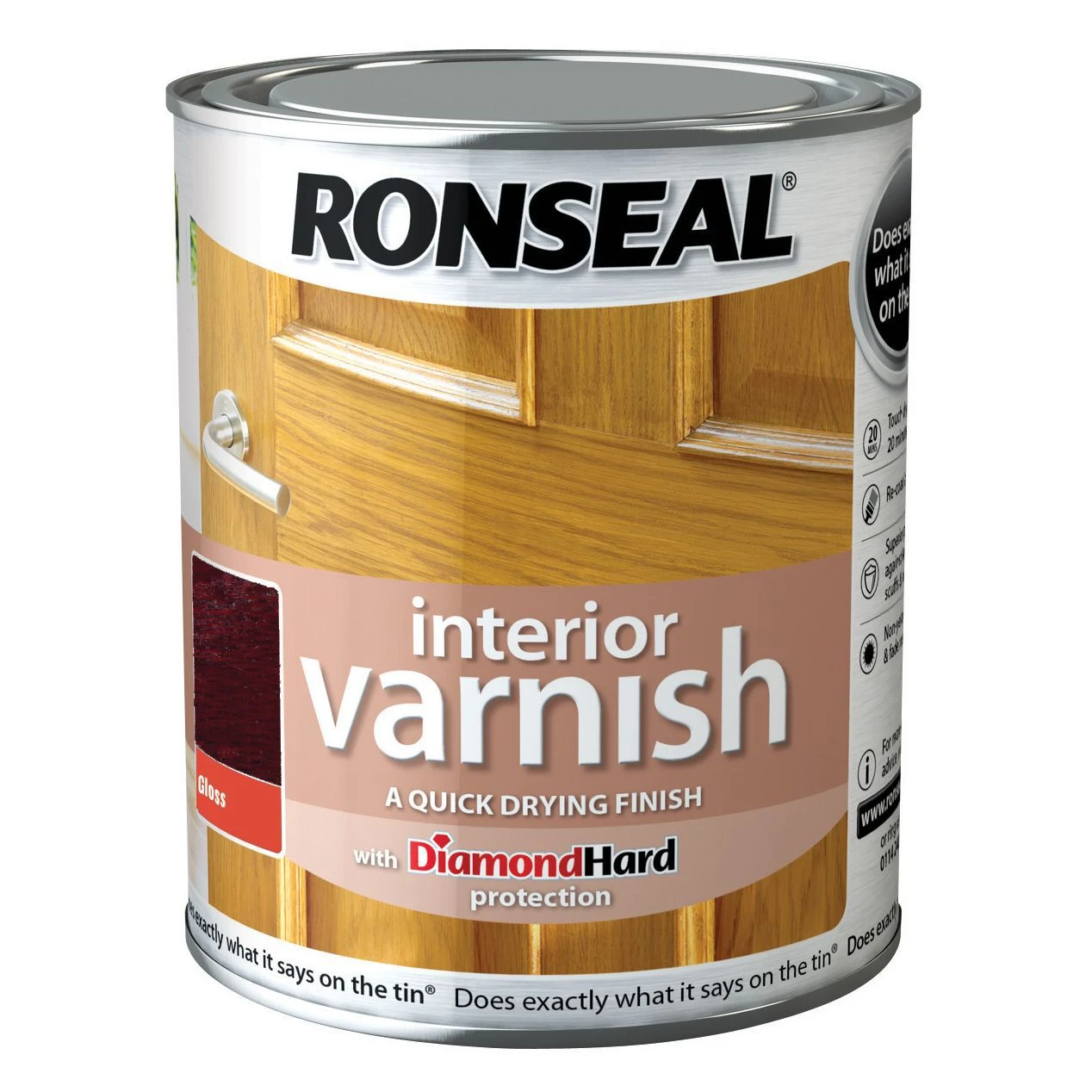 This deep mahogany interior varnish from the Ronseal Interior diamond hard range can be applied to interior using a brush. The varnish dries in just 20 minutes and will cover up to 24 m² per litre on average.