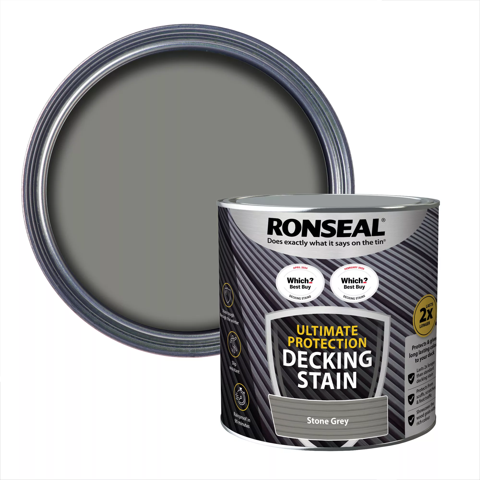 Ronseal ultimate protection decking stain will keep your deck protected from the weather and everyday wear and tear. It looks great all year round, with added slip resistance. It lasts twice as long as standard decking stain.