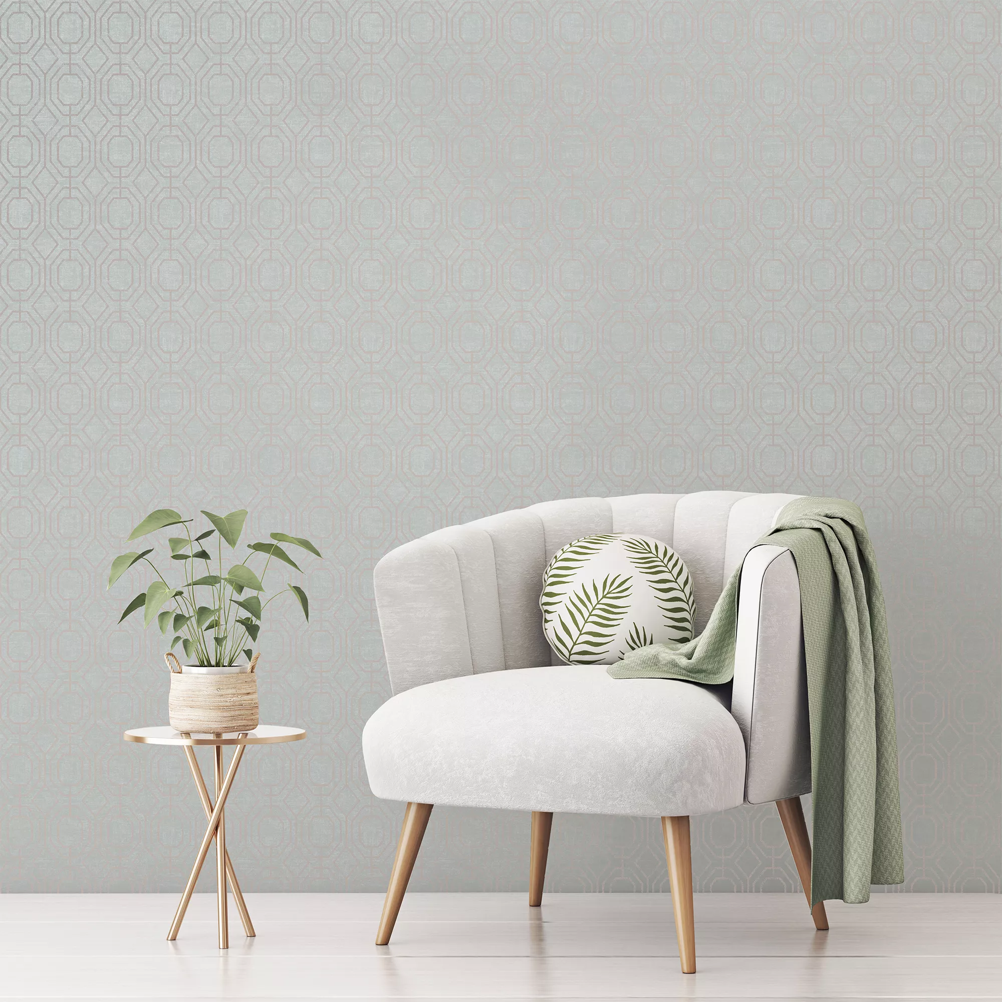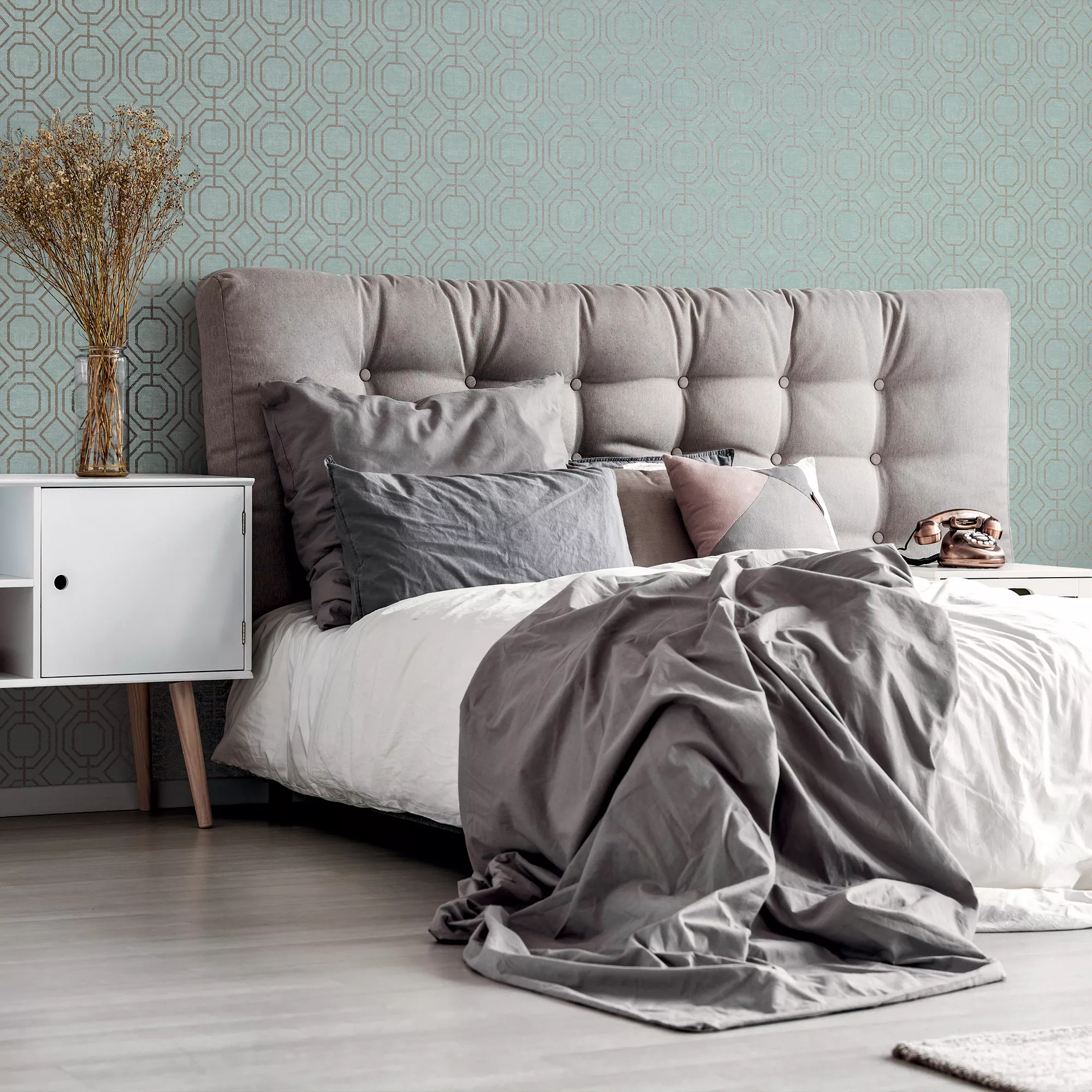 The gorgeous geometric design of the luxe geo duck egg is set upon a textured base for a luxurious look, with the gold geometric detail to give it that extra sophistication.
