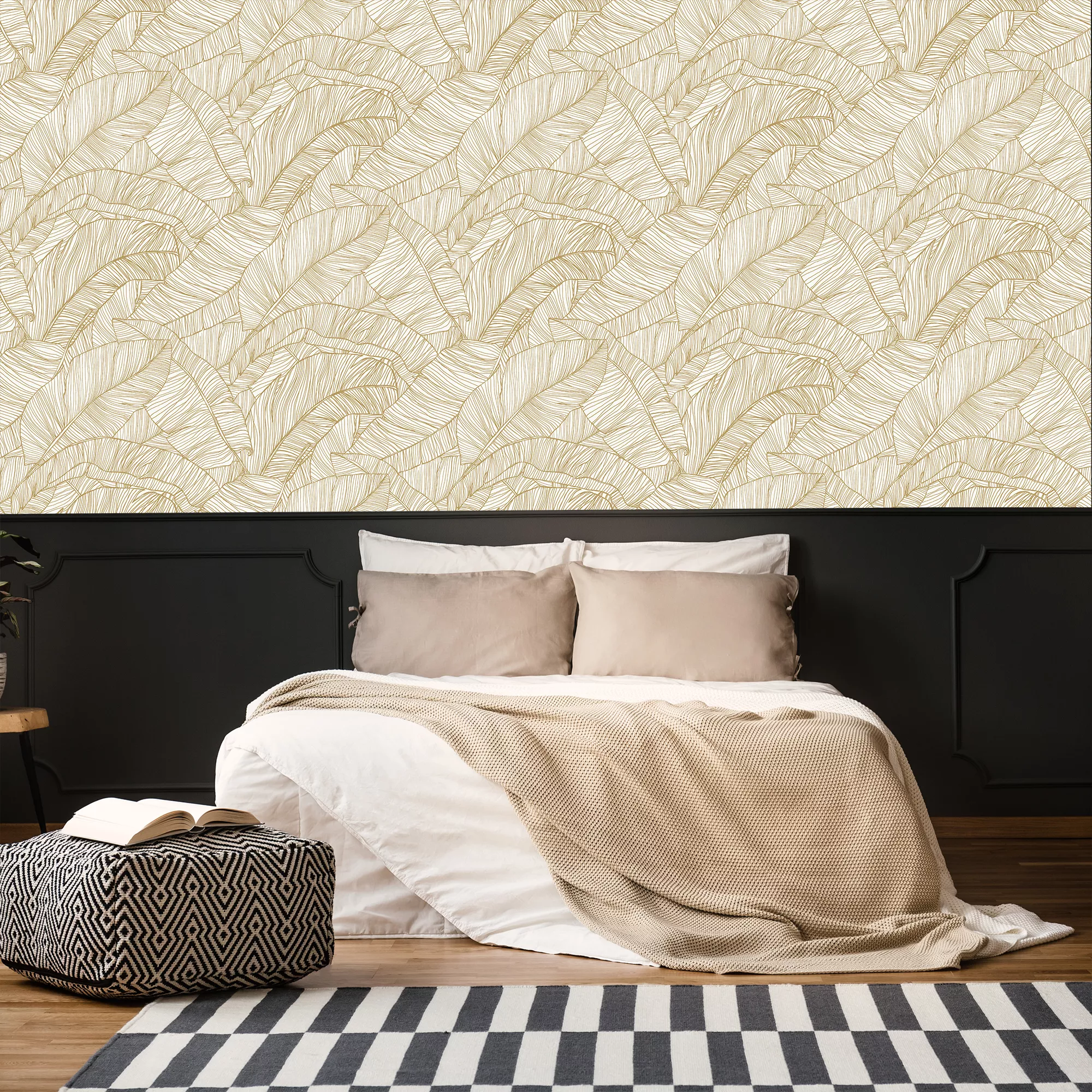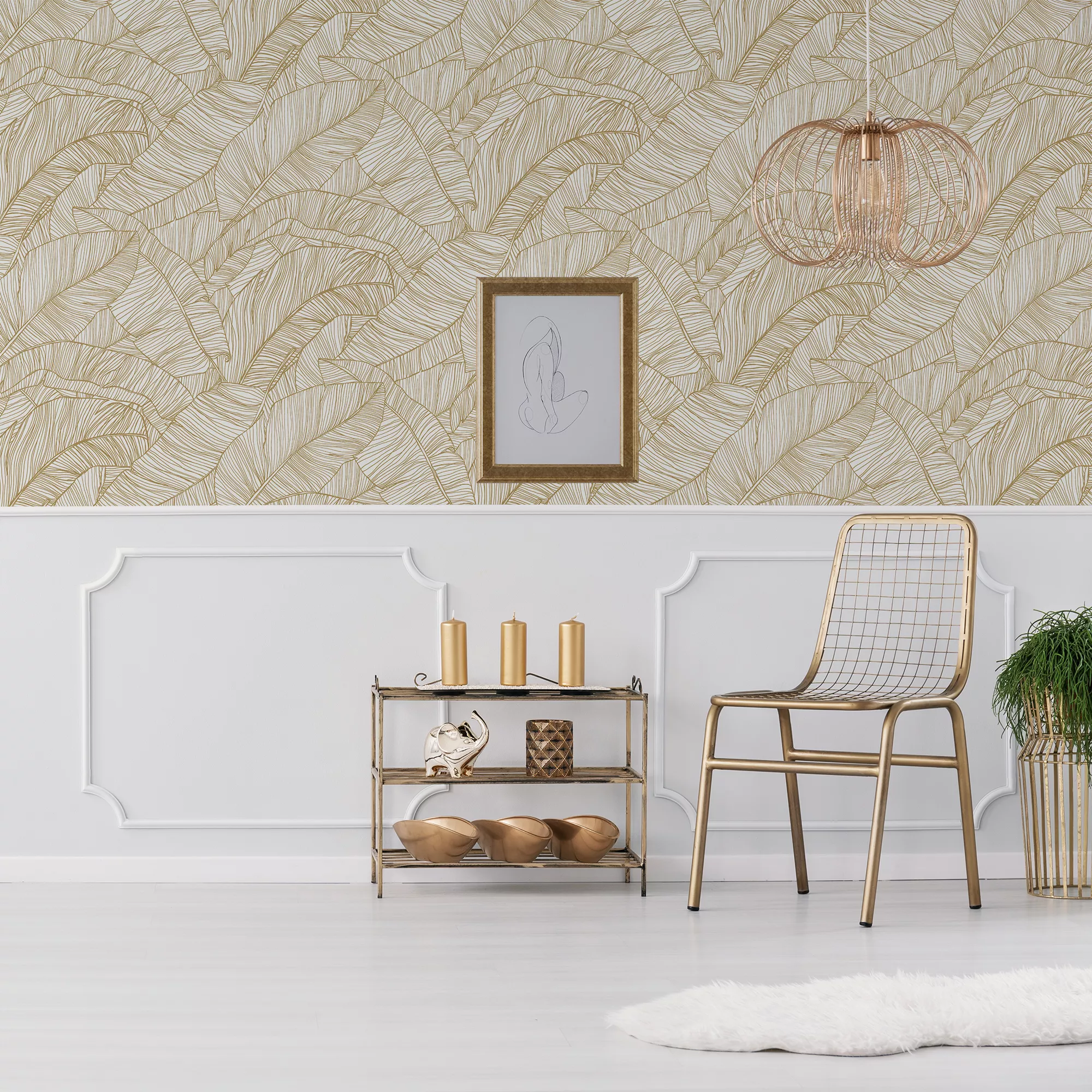Kaya is a beautiful layered silhouette leaf design wallpaper which provides a glamorous touch with gold metallic detail. It will add a touch of class and contemporary feel to any room within your home.