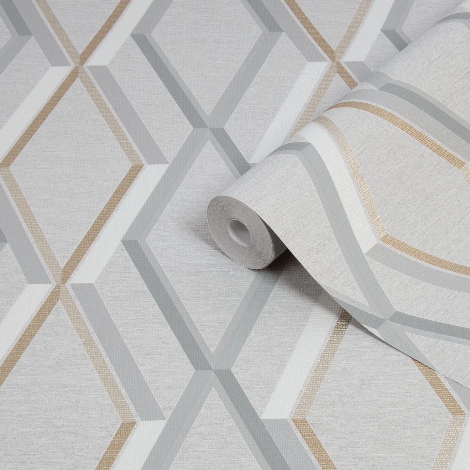Perfect for most living areas within your home, this diamond design wallpaper can be used to decorate a whole room or a feature wall. If you are looking to give your home a stylish refresh, this beautiful wallpaper with metallic tones is ideal. The geometric design is made up of neutral colours and a soft fabric effect texture to create a stunning paper.