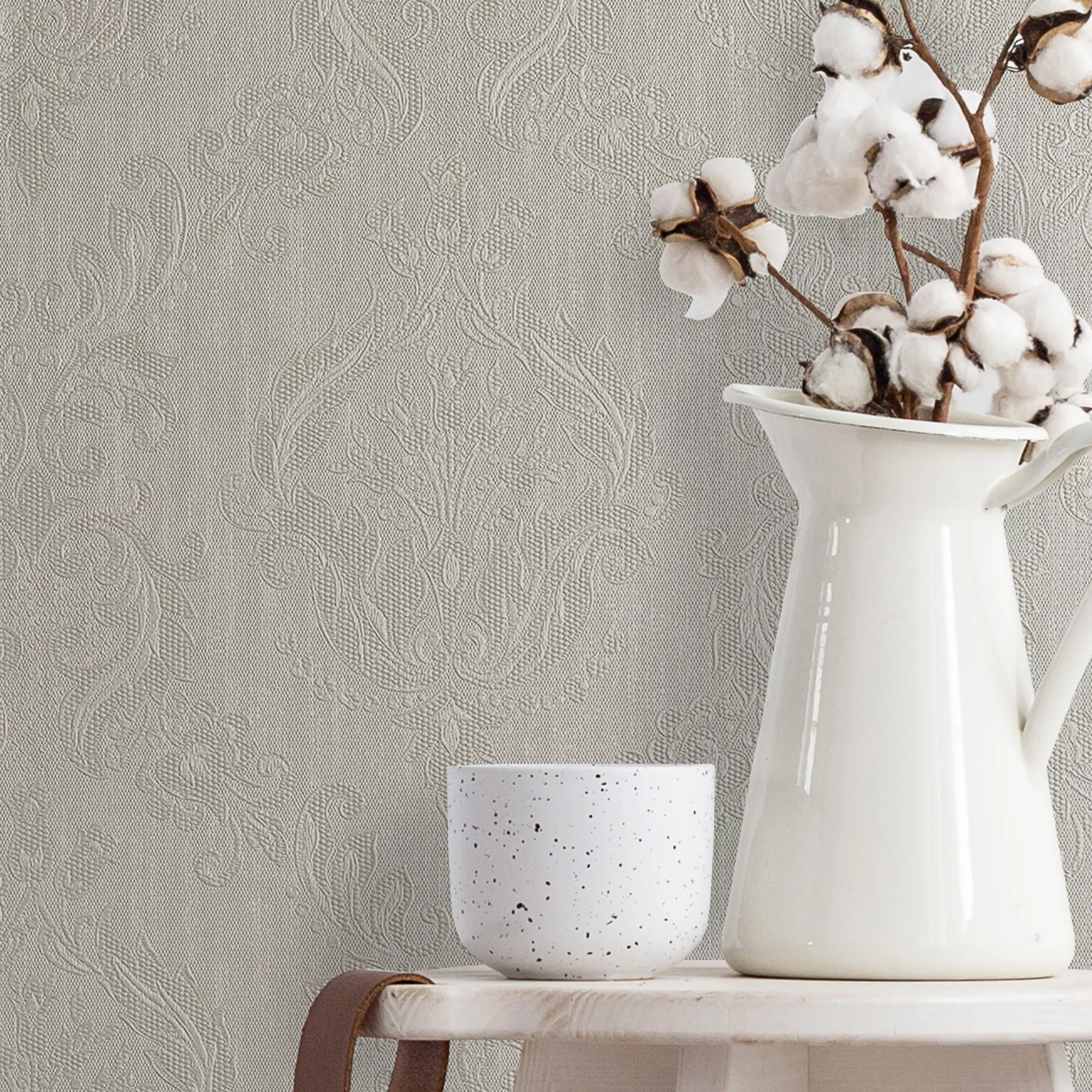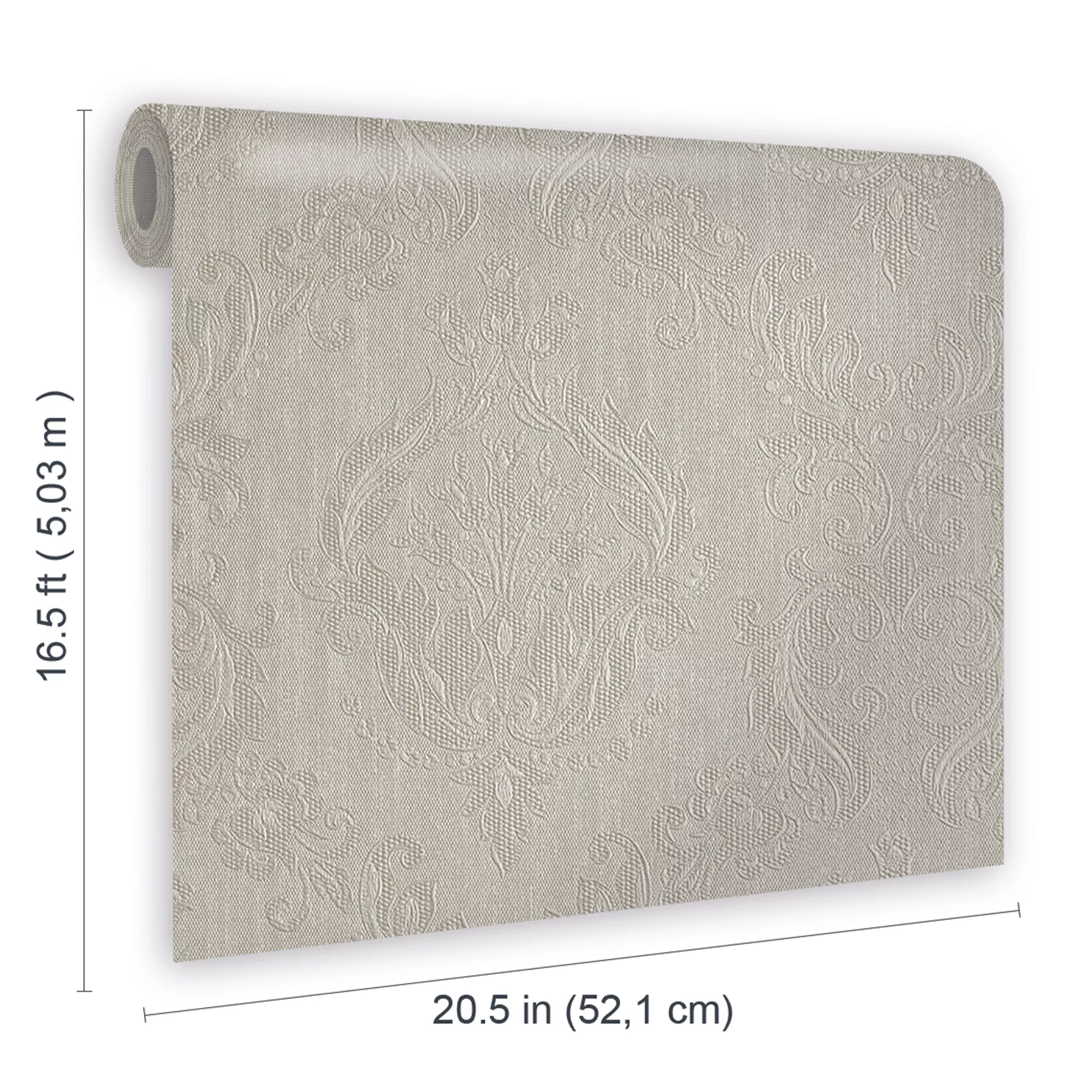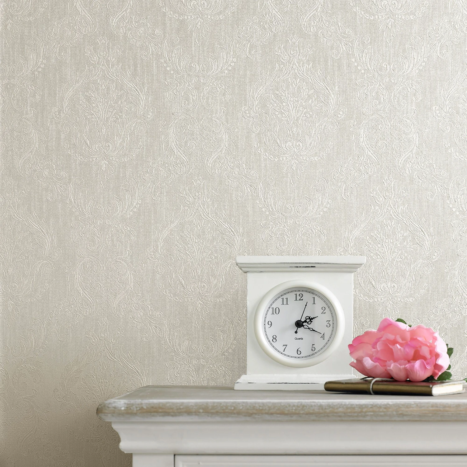 This classical mid-size elegant damask wallpaper has a shimmering background, adding an elegant feel to any home.